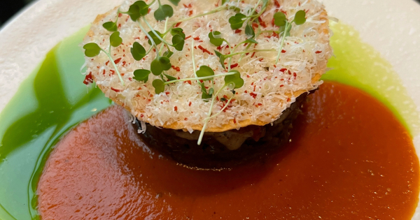 laag tomaat compote, laag ricotta burratacrème.