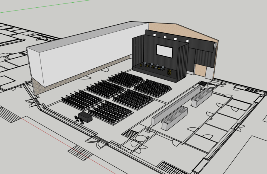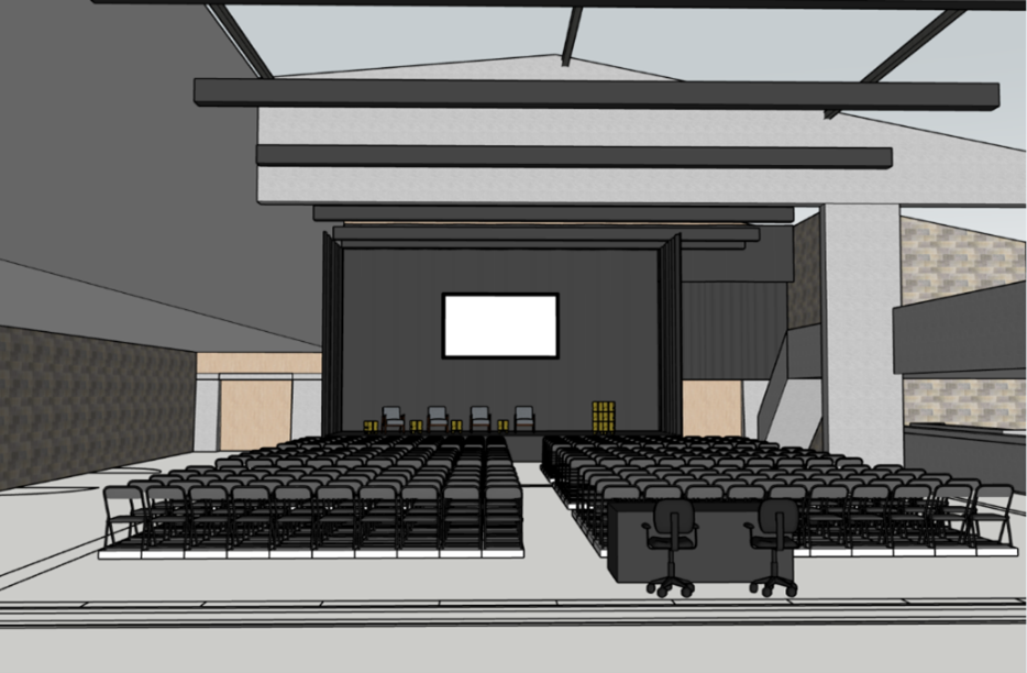 Zaal Depart bouwt standaard voor een congres een podium van 11m*4m*80 cm met doek achter + zijkanten. Op aanvraag: Tot 6 clubzetels voor panelgesprekken. Opgelet: standaard worden de stoelen aangeleverd op karren en dient de organisator nog zelf te plaatsen in de zaal.
