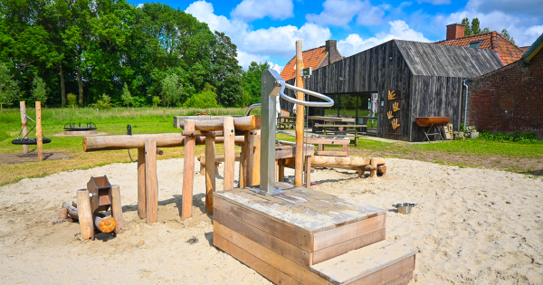 Zoek de handjes aan het waterspeelplein in de achtertuin van de hoeve.