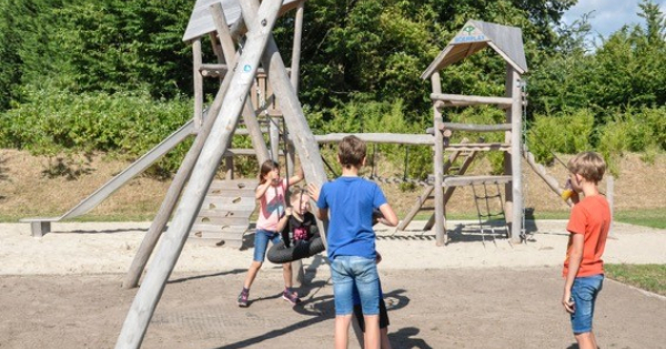 - allerlei avontuurlijke houten speelelementen: 2 stammenoversteken, 2 evenwichtparcours, 3 rioolbuizen, stappalen, 4 evenwichtsbalken, zitstammen, 2 stammentrappen, 3 trappen op heuvels