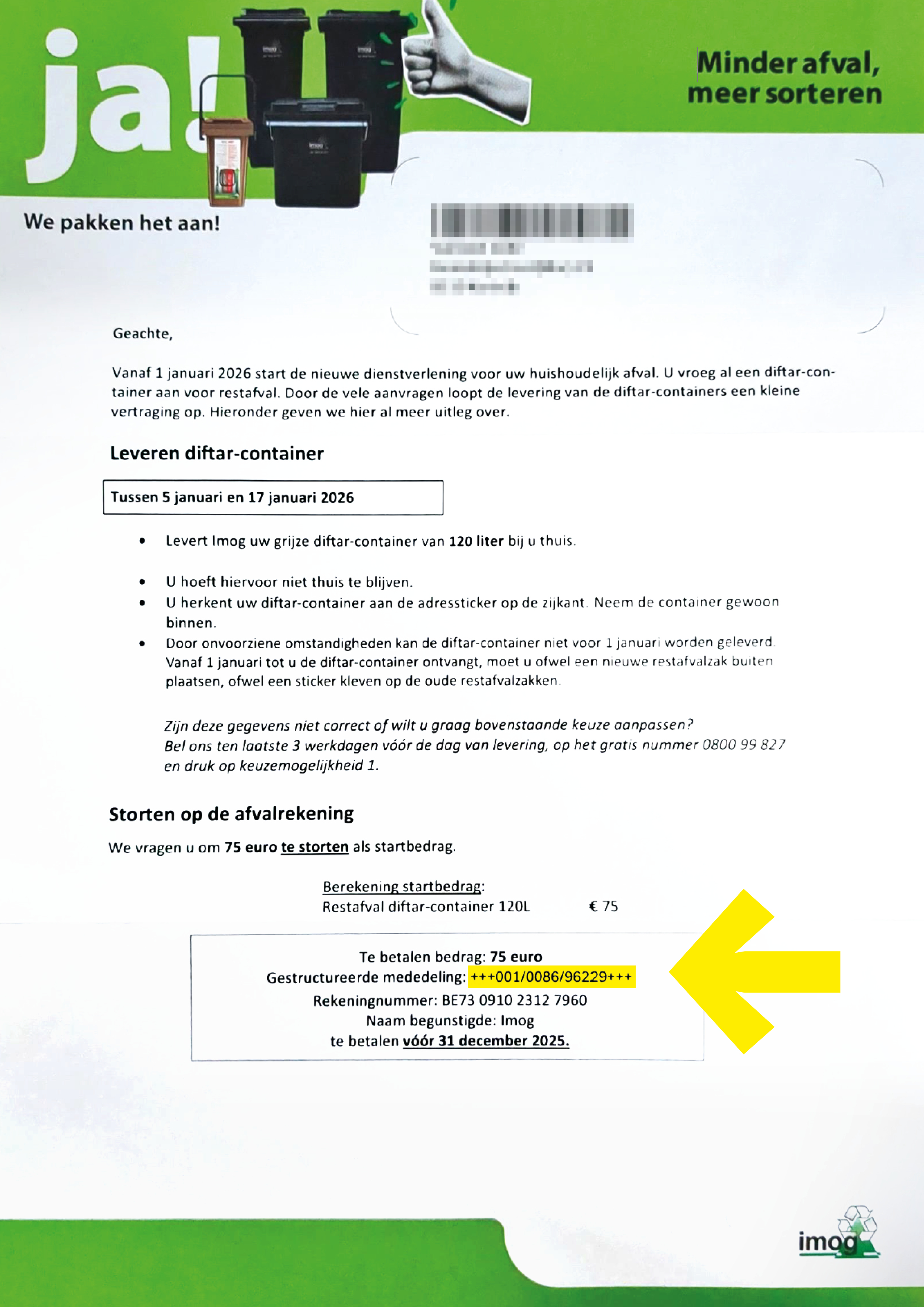 • Je gebruikt een diftarcontainer (de gratis restafvalzakken verdwijnen).