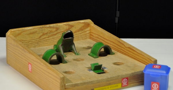 Probeer met een welgemikte worp je schijfjes in de bek van de kikker te gooien. Valt hij erin of valt in een ander gaatje, da kan je op het eind je punten optellen. Fiche kikkerspel Volksspel kikkerspel