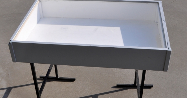 In de tentoonstellingskasten kunnen kunstwerken tentoongesteld worden. De kasten zijn bedekt met glas. Hoogste zijde: vooraan 95 cm - achteraan 1,05 cm Diepte: 57 cmBreedte: 1,46 cm