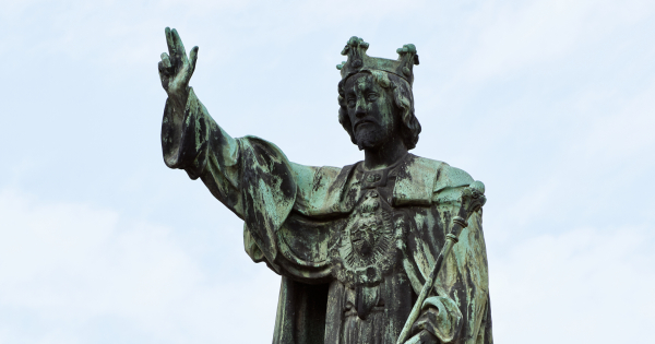 Dit Heilig Hartbeeld toont Jezus ten voeten uit, gekroond en gehuld in een koningsmantel. In zijn hand houdt hij een scepter terwijl hij met de andere hand een zegenend gebaar maakt. Het beeld combineert twee vereringen nl. die tot het Heilig Hart van Jezus en die tot Christus Koning.