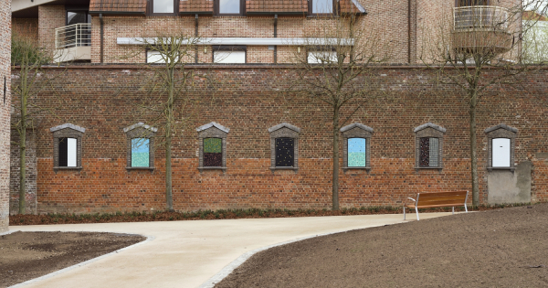 Tot 1978, toen de Arme Klaren de Groeningeabdij verlieten, werden in deze muurkapellen de Zeven Smarten van Maria afgebeeld. Kris Martin blaast ze nieuw leven in met Creation, een kunstwerk uit glasmozaïek dat in een abstracte, universele vormentaal verwijst naar de zeven dagen van de schepping.