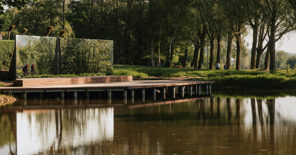 Het imposante spiegelkunstwerk 'Happily Ever After' van de Cubaanse kunstenares Rachel Valdés (1990), dat tijdens het kunstenparcours Triënnale Kortrijk in de zomer van 2024 te zien was op de nieuwe verlaagde Leieboorden, krijgt een permanente plek in het mooi stukje natuur in Bissegem Plage. Het werk, dat na de Triënnale werd aangekocht door Stad Kortrijk, komt er dankzij steun van Toerisme Vlaanderen in het kader van de Relance-oproep voor Recreatief en Sportief fietsen. Met deze 16 meter lange spiegel krijgt de Vlaanderenroute er een iconisch landmark bij.