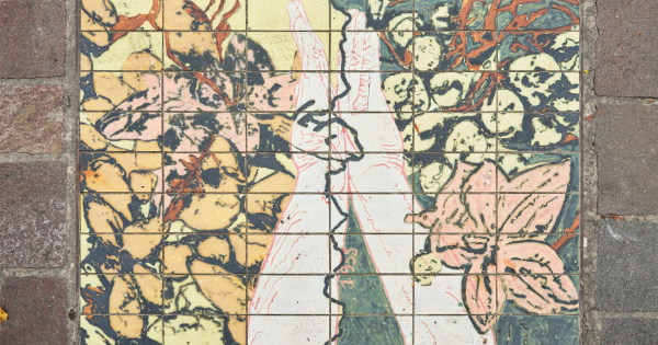 Het centrum van Aalbeke is een belangrijk verkeersknooppunt voor Kortrijk en de Moeskroensesteenweg een doortochtroute. Peter de Graaff creëerde met zijn keramiek tegels een rustpunt langs de drukke steenweg. Keramiek was een evidente keuze omdat Aalbeke is gekend als kleidorp door de grote aanwezigheid van klein in de bodem. Die kleiputten zijn een belangrijk onderdeel van de lokale geschiedenis en economie.