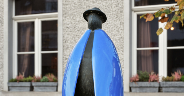 Het bronzen beeldje De Vastberadenheid is onderdeel van de beeldengroep 'Cccorpus50Scribbel', ontworpen door kunstenaar Carlos Caluwier (°1956, Zwevegem).