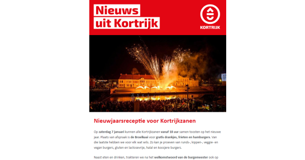 Organiseer je een gratis en publiek toegankelijk evenement en wil je graag zoveel mogelijk mensen bereiken? De stad stuurt om de 2 weken een elektronische nieuwsbrief uit naar zo'n 7.000 e-mailadressen. Naast nuttige informatie vanuit het stadsbestuur, kunnen ook externe campagnes en evenementen worden opgenomen in een kort bericht.