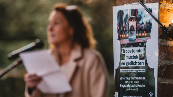 Reveil brengt mensen samen rond afscheid en rouw op een moderne manier. In 2025 vond het evenement Reveil plaats op de begraafplaats van Heule. Celliste Isabel Huyghebaert bracgt troostende muziek en studenten woordkunst lazen gedichten voor.