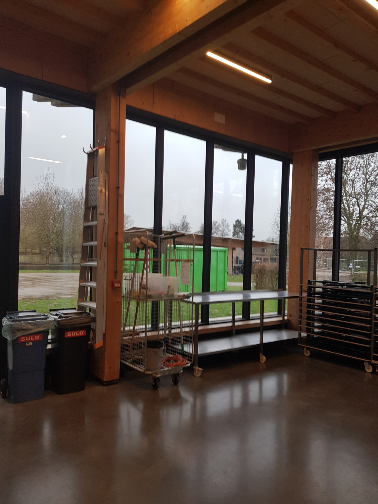 Je kan lokaal 0b, gescheiden van L0a door een mobiele wand, huren als een gewoon polyvalent lokaal en voor de prijs van een polyvalent lokaal. In dat geval mag je de keuken en het materiaal uit de keuken niet gebruiken. Je mag die ruimtes dan ook niet betreden. Private organisaties en bedrijven kunnen de accommodatie niet zonder keuken huren.